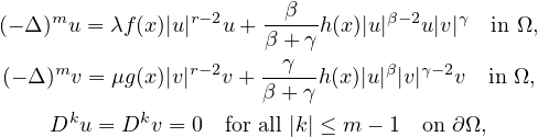 Key Words: Polyharmonic operator system; sign-changing weight functions;