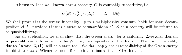 Aikawa, Hiroaki: Quasiadditivity of capacity and minimal thinness, pp. 65-75.