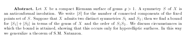 Bujalance, E., A.F. Costa, and D. Singerman: Application of Hoare's theorem to symmetries of Riemann surfaces, pp. 307-322.