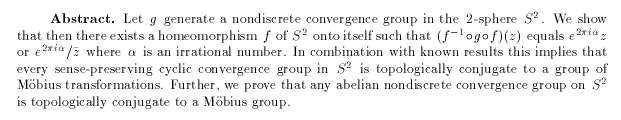 Hinkkanen, A., and G. J. Martin: Abelian nondiscrete convergence groups in the plane , pp. 205-246.