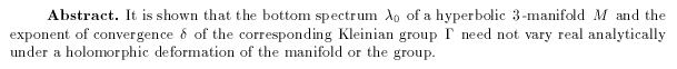 Astala, K., and M. Zinsmeister: Abelian coverings, Poincaré exponent of convergence and holomorphic deformations, pp. 81-86.