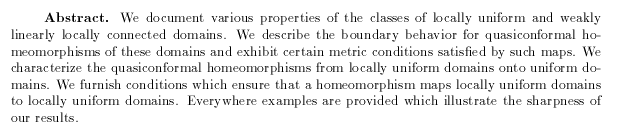 Herron, David A., and Pekka Koskela: Locally uniform domains and quasiconformal mappings, pp. 187-206.