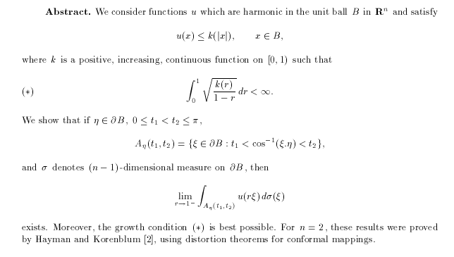 Korenblum, B., P.J. Rippon, and K. Samotij: On integrals of harmonic functions over annuli, pp. 3-26.