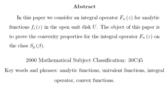 Daniel Breaz -- A convexity property for an integral operator on the class Sp(betha)