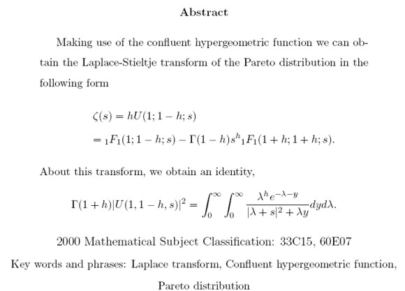 Katsuo Takano -- On the confluent hypergeometric function comming from Pareto distribution