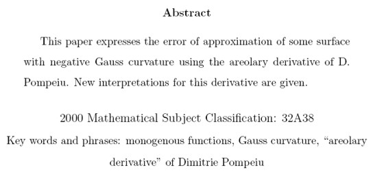 Lidia Elena Kozma -- Applications of Pompeiu areolary derivative in expressing of the Gauss total negative curvature