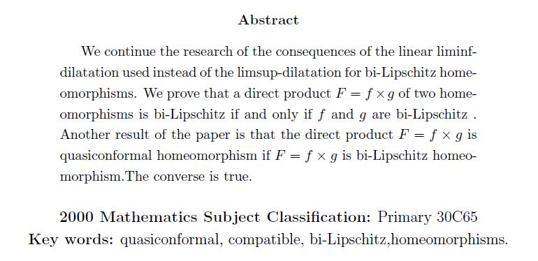 Serafima Cerchez -- Quasiconformality and Compatibility for direct product of bi-Lipschitz homeomorphisms