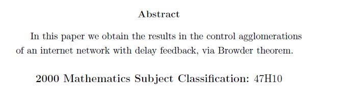 Ion Marian Olaru, C. Pumnea, E. Bacociu, A. Nicoară -- The control agglomerations of an internet network with delay feedback