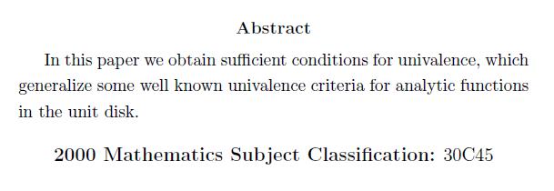 Horiana Tudor -- A sufficient condition for univalence