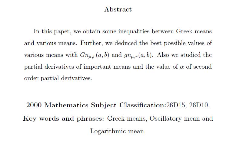 V. Lokesha, S. Padmanabhan, K. M. Nagaraja, Y. Simsek -- Relation between Greek means and various means