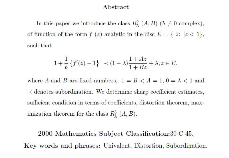T. R. Reddy, P. T. Reddy -- Some results on sub classes of univalent functions of complex order