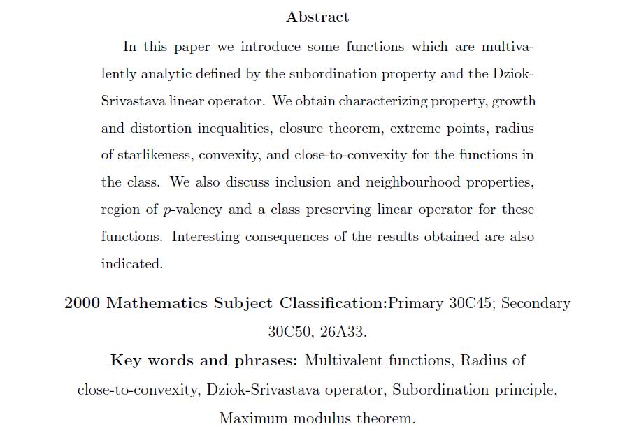 S. M. Khairnar, M. More -- Some analytic and multivalent functions defined by subordination property
