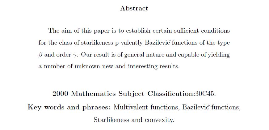V. B. L. Chaurasia, V. Saxena -- On sufficient conditions for starlikeness of p-valently Bazilevici functions of the type beta and order gamma