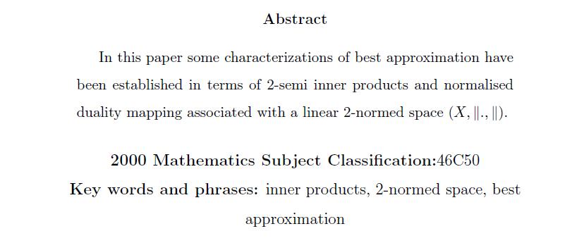 S. Elumalai, R. Vijayaragavan -- Characterizations of best approximations in linear 2-normed spaces