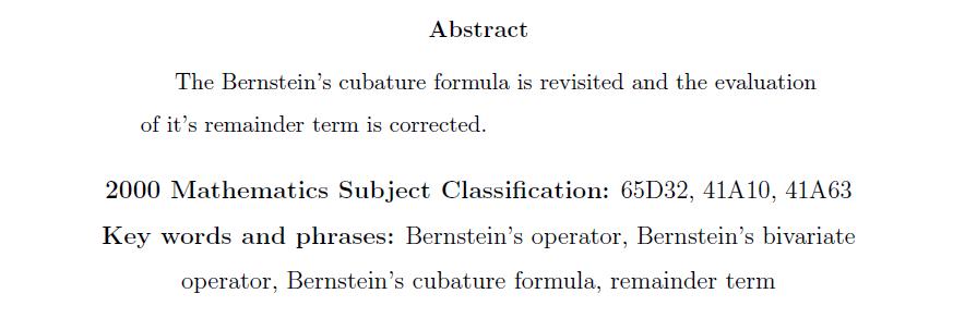 D. Barbosu, O. T. Pop -- A note on the Bernstein's cubature formula
