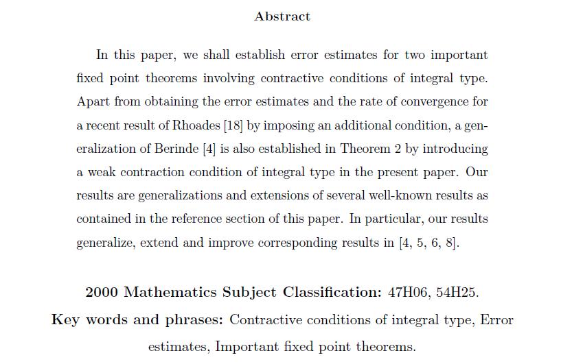 Memudu Olaposi Olatinwo -- On some fixed point theorems and error estimates involving integral type contractive conditions
