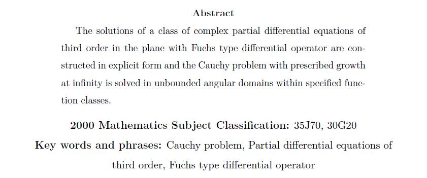 S. K. Burgumbayeva, A. B. Tungatarov -- Cauchy problem for a class of elliptic systems of third order in the plane with Fuchsian differential operator