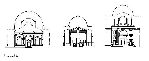 These facts constitute a solid base for the study of the Albertian design method: the dimensions of the architectural elements are determined by finite ratios; the dimensions are interrelated by mathematical (but not musical) progressions; the measurements create numerically proportionate triads, which are themselves proportionately interrelated. Perfect order, harmony, in which number links the visible to the invisible: mathematical order is not only the order of the divine, but also the basis for any order that can be achieved in reality.