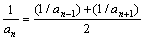 the arithmetic mean of the reciprocals of the extremes; in other