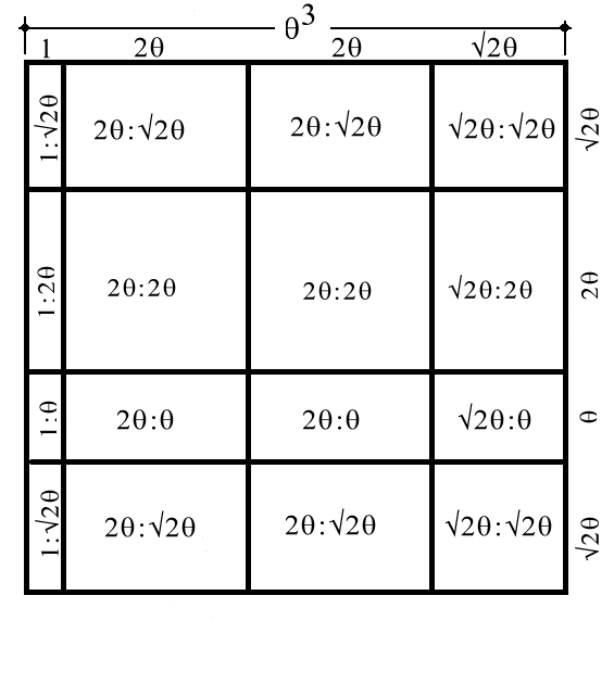 Fig. 7. A rectangle subdivided by sixteen subrectangles with dimensions from Table 8. | back to text| top of page |