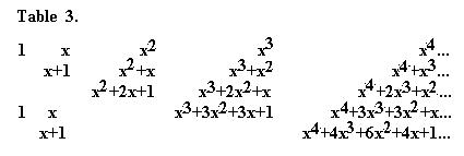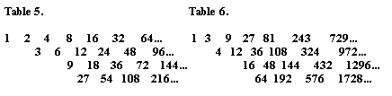 New Jersey Institute of Technology Department of Mathematics University Heights Newark, New Jersey 07102 USA INTRODUCTION This essay should not be looked at as an historical study. M.L. D'Ooge [1] has admirably presented Nicomachus's treatise in an historical context, and I have nothing to add. Rather I shall take a single theme found in the Arithmetic and look at it with the lens of a mathematician. Nicomachus also wrote another surviving manuscript, The Manual of Harmonics [2], and one of his tables leads naturally to a representation of the musical scale of Pythagoras. However, I will leave the discussion of such matters to a future article. NICOMACHUS SEQUENCES ![]() These tables follow a kind of Pascal's law in which each number is the sum of the two above it. Note that in Table 1 each column ends when the integer is no longer divisible by 2, while the second table ends when integers are no longer divisible by 3. The motif of each table is expressed by the triangle of numbers shown to the left. Successive elements in the rows of Table 1 (Table 2) are in the ratio of 1:2 (1:3) while rows successive elements in each column are in the ratio of 2:3 (3:4). Also successive numbers on right leaning diagonals are in the ratio 4:3 (9:4). Tables 1 and 2 are generalized to any real number x as shown in Table 3. ![]() Again each column ends when an element is not divisible by x. The terms of the geometric series on the diagonal are seen to be (1+x)n for n=0,1,2, The triangle of numbers, 1, x, x+1 can be looked at as the transformation, Nicomachus actually thought of this relationship as a transformation and says in Chapter XXIII of Book I, The multiple superpartients*