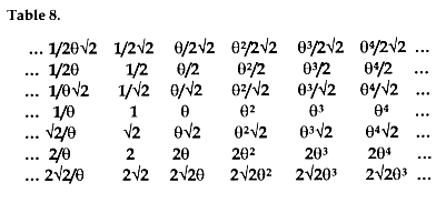 where fn + fn+1 = fn+2. In order to make the f-sequence into a system of architectural proportions, the great 20th-century architect Le Corbusier cleverly adjoined a second series multiplied by 2 to form so-called "Red and Blue sequence", which he named the Modulor [15,16, 17]. Table 9.