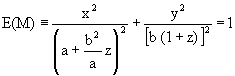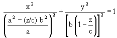 With values a, b and c the resulting equation for the surface f(x,y,z)=1 is: