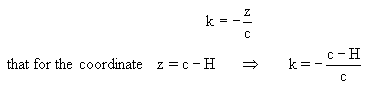 taking the center of the generator ellipse as the origin of the coordinates, and considering it located between the straight ridge and the base at a distance c below the straight ridge. The linear relation between "k" and "z" can be set forth by knowing that in the straight ridge z = c for k= -1, and in the generator ellipse z = 0 for k = 0,
