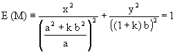 This represents the Cartesian equation of an ellipse for all k Î Â, and by depending on the parameter k, it constitutes the equation of a family of ellipses E(M), generated from the generator ellipse M defined according to the equation (1). ANALYSIS OF THE ELLIPSE FAMILY E(M)