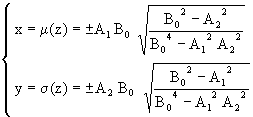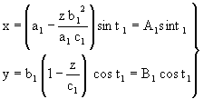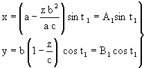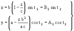 In the previous expressions it can be observed that A1=A2=A0 and B1=B2=B0, these coeficients depending on the paramenter z. Thus the system formed with the four previous equations will lead to the loci of points belonging to the plane curves in accordance with the solution shown below (32), such that the intersection of such plane curves by whatever plane perpendicular to the Z axis gives rise to the four common points of the two ellipses located in the same cutting plane.