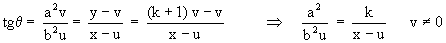 In order to prove this property of the ellipse, which is common to all three conics, as further demonstrated, let us get at first, the slope of the straight line n normal to the generator ellipse M at point Q(u,v). Deriving the equation (1) it yields: