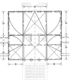 113 Division St. Great Barrington, MA 01230 USA Among the great houses of the Renaissance is Palladio's Villa Emo at Fanzolo in Northern Italy, built in the 1550s to realize Lunardo Emo's dream of a family seat in the country. Palladio's methods of harmonizing buildings organically with their physical surroundings borrow from rural traditions and local farm customs. The massive south-facing entry ramp in front, for example, serves as a threshing floor, where grain may be spread in the sun to dry. Palladio adopted a number of classical rules of building recorded in the ten books of De architectura by the Latin theorist Vitruvius, well known for applying mathematical proportion to a building's measures and equally adept at achieving harmony in more pragmatic and natural ways. Beyond vernacular methods of achieving harmony by integrating buildings with the natural landscape, harmony appears mathematically in the villa's dimensions. Measuring the rooms of the central block in Vicentine feet, Palladio used a 27-foot square for the central hall, with additional rooms of 12 x 16, 12 x 27, 16 x 16, and 16 x 27 framing the hall and the portico (16 x 27). Meanwhile, various chambers in the wings include measures of 12, 24, and 48. Scholars such as Rudolf Wittkower have identified the numbers 12, 16, 24, 27, and 48 as the terms of musical harmonies. During the Renaissance, Alberti, reviving ancient theories of Vitruvius, Plato, and the Pythagoreans, translated these numbers of musical consonance into spatial ratios and proportions. The ratios became architectural rules for orchestrating a building's individual measures and harmonizing the parts with the whole. The appearance of musical ratios at Villa Emo reflects the Renaissance quest for order in structure and harmony in measure. ![]() Meanwhile, Golden Mean proportions also appear in the Villa Emo, whose measured drawings suggest that Palladio employed mathematical proportions through a consistent application of geometric techniques. The Golden Ratio prevails throughout the elevation and plan, appearing repeatedly in the building's measures, from the overall proportions of the central block to the placement of individual windows and doors. A geometric analysis based on the 1972 survey of Villa Emo by Mario Zocconi and Andrzej Pereswiet Soltan reveals that the plan of the central block is not perfectly square, but proportioned to a circle that inscribes two smaller squares. Subsequent room dimensions follow in Golden Mean progression. The placement of doors and windows derives from a regular pentagon whose base is drawn on the front edge of the portico. While proportions derived from other geometric shapes are also present, the Golden Mean appears to dominate the front elevation of Villa Emo. Double squares mark the height of the flanking walls. The diagonals of the double squares situate the endpoints of the hip of the roof in Golden Mean proportion. ILLUSTRATION: Room dimensions in Palladio's Villa Emo are in Golden Mean ratio. The system of dividing a Golden Rectangle into a square and a smaller Golden Rectangle is evident. ABOUT