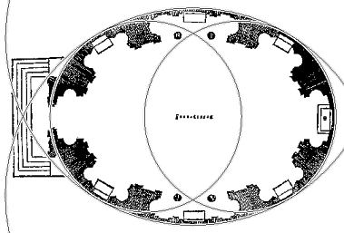 An alternative approach was given in Sebastiano Serlio's celebrated Quinto Libri d'Architettura published over the period 1537-1575. Here, four techniques for the simple and reliable construction of ovals were introduced which have since been applied by many architects across Europe. Using various geometric forms (i.e. the triangle, square, and circle) as a basis they produced ovals made up from four circular arcs. Serlio's constructions and some of the many possible alternatives