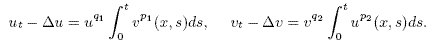L. L. Du, C. L. Mu, Z. Y. Xiang, Global existence and blow-up to a reaction- diffusion system with nonlinear memory, Com. Pure Appl. Anal. 4 (2005) 721-733. MR2172717(2006d:35101). Zbl 1089.35026.