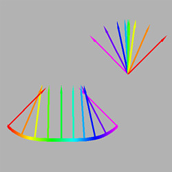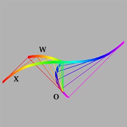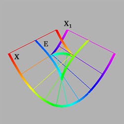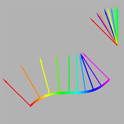As we let the distance r approach infinity, the values of t for which k(t) = 1/r will approach the values for which k(t) = 0, the singularities of the Gauss mapping. We may interpret this phenomenon by stating: The Gauss mapping is the parallel curve at infinity. We may express this in another way by considering the linear interpolation between the curve X and its Gauss map N, i.e. the family of curves Iu(t), 0 < u < 1 defined by