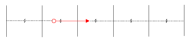 The group discussed possesses an invariant space E2 - the plane, an invariant subspace E1 - a line, and has no invariant points. Therefore it belongs to the category of symmetry groups of friezes G21 - the line groups of the plane E2 (S2) without invariant points. Distinguishing between the spaces E2, S2, L2 is not necessary because we are dealing with the line groups. Because this group is generated by a glide reflection P perpendicular to the reflection R1, its crystallographic symbol will be pmg, or in short form mg (M. Senechal, 1975). Within the crystallographic symbol pmg, p denotes the presence of a translation X = P2, i.e. the translational subgroup 11={X}; the symbol m denotes a reflection R1 perpendicular to this translation, and the symbol g denotes the glide reflection P. In the short symbol mg, the translation symbol p is omitted.