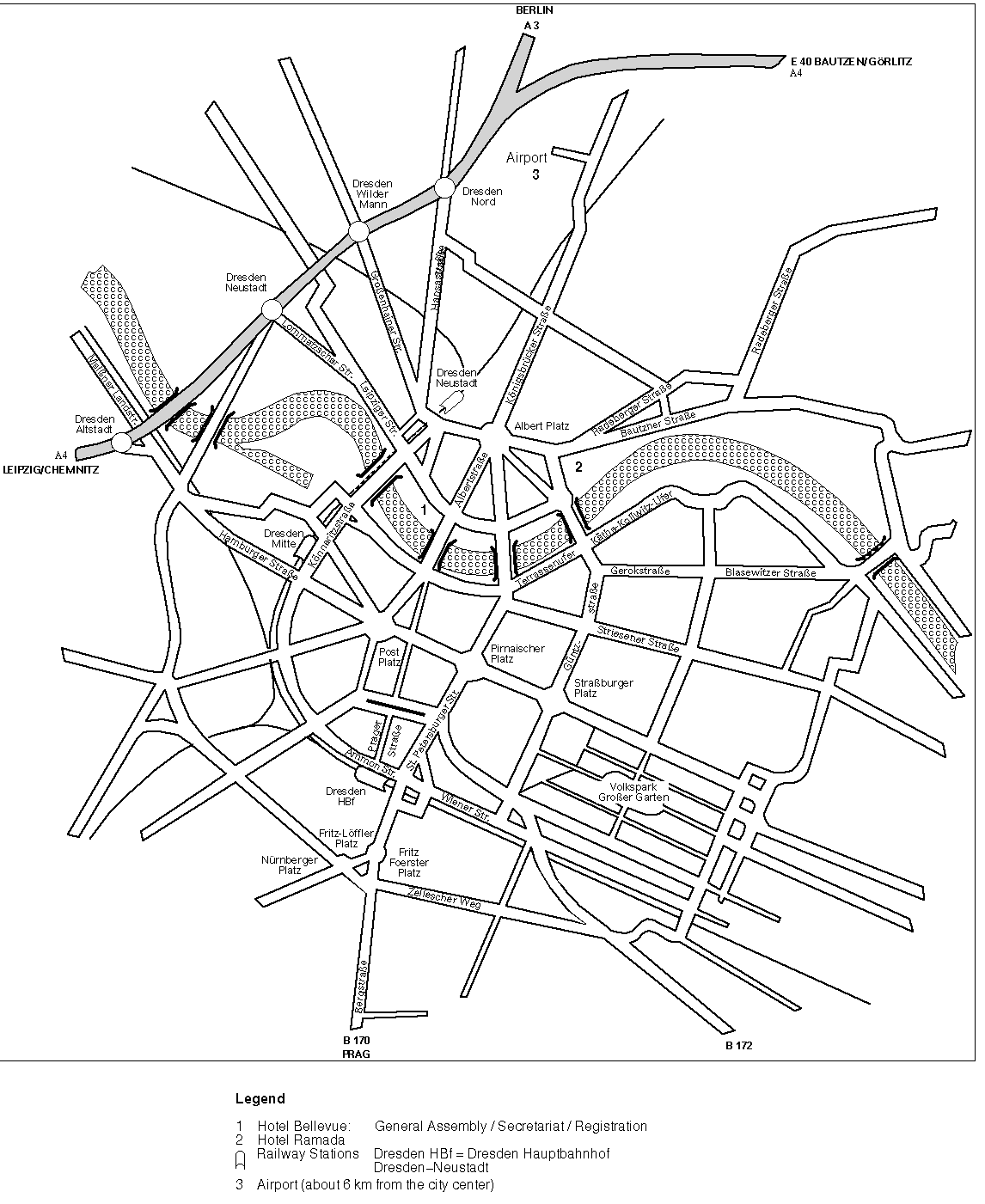 After arrival in Dresden, delegates were requested to go to the GA secretariat in Salon Prestige (Hotel Bellevue) to register for the General Assembly and to obtain additional information. Registration was not possible in the Ramada Hotel.