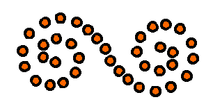 Interesting examples are derived by superposing concentric rosettes with different symmetry groups. In such a case, the symmetry of the system is the symmetry of the least symmetrical rosette belonging to the composition or some of its subgroups, usually non-trivial (Figure 2.19e, 2.23).