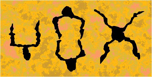 Examples of rosettes with the symmetry group D1 (m) (Paleolithic, France and Spain). |