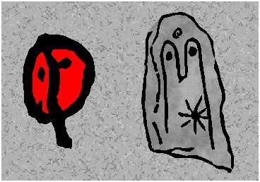 Stylized human faces with the symmetry D1 (m) (Paleolithic and Neolithic of Europe). |