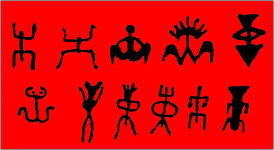 Stylized human figures with the symmetry D1 (m) (Paleolithic and Neolithic of Italy and Spain). |
