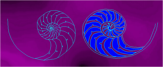 The idea of similarity symmetry and the possibility for its exact mathematical treatment was introduced in the monograph by H. Weyl (1952), who defines two similarity transformations of the plane E2: a central dilatation (or simply, dilatation) and dilative rotation, with the restriction for the dilatation coefficient k > 0, and he establishes the connection between the transformations mentioned and the corresponding space isometries - a translation and twist, respectively. His analysis is based on natural forms satisfying similarity symmetry (e.g., the Nautilus shell, Figure 3.1.; the sunflower Heliantus maximus, etc.). In considering a spiral tendency in nature Weyl quotes certain older authors (e.g., Leonardo and Goethe), who also studied these problems and also that of a phyllotaxis, the connection between the way of growth of certain plants and the Fibonnaci sequence, linked to a golden section (H.S.M. Coxeter, 1953, 1969). The sequence 1,1,2,3,5,8,13¼ defined by the recursion formula: f1 = 1, f2 = 1, fn+fn+1 = fn+2, n Î N, is called the Fibonnaci sequence. A golden section ("aurea sectio" or "de divina proportione", according to L. Paccioli) is the division of a line segment so that the ratio of the larger part to the smaller is equal to the ratio of the whole segment to the larger part, i.e. its division in the ratio t:1, where t is the positive root of the quadratic equation t2+t+1 = 0, t = (Ö5+1)/2 » 1,618033989...